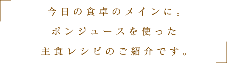 すべて ごはん おかず おやつ のみもの その他 毎日にほんのりとけこむおいしさを。ポンジュースの魅力に溢れたレシピのご紹介です。 今日の食卓のメインに。ポンジュースを使った主食レシピのご紹介です。 今日の食卓を華やかに。ポンジュースを使った主菜・副菜レシピのご紹介です。 こどもに。ホームパーティーに。ポンジュースを使ったおやつレシピのご紹介です。 簡単でおいしい。ポンジュースを使ったのみものレシピのご紹介です。 楽しみ方いろいろ。ポンジュースを使ったその他のレシピのご紹介です。