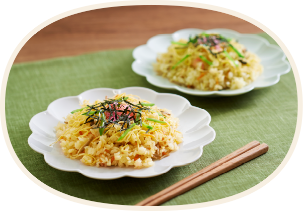 - すし飯を器に盛り、飾りつけ具材を添え、できあがり。